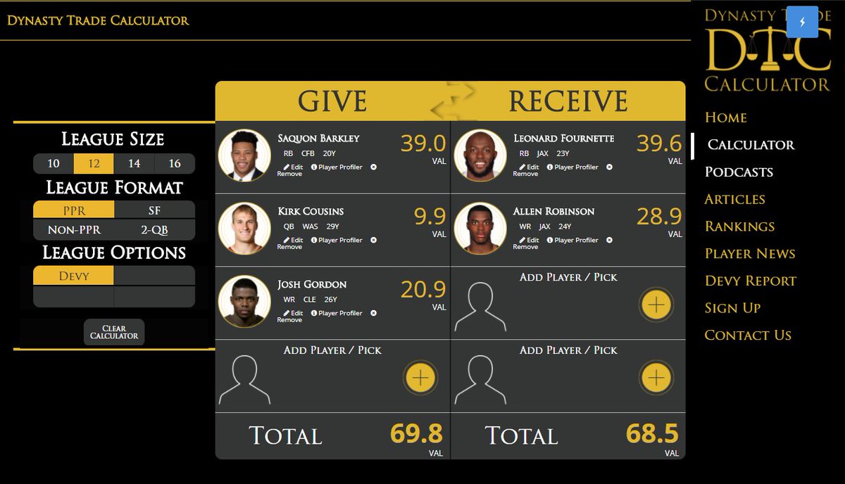 Web Really interesting post fun to see the math behind the trade calculator. You can also edit league size now. Web 1 3 5 Support 3 KeepTradeCut exists to help you manage your dynasty fantasy football squads.